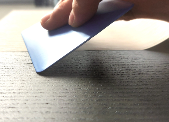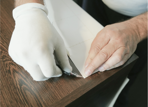 Piega con cura gli angoli e, durante la lisciatura della pellicola, utilizza guanti di cotone. Rimuovi con attenzione l’eccesso di pellicola usando un bisturi.